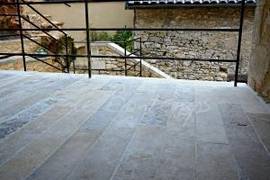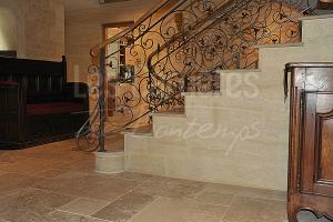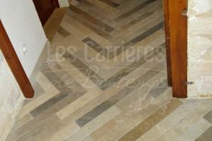 Escalier et entrée opus toutes teintes d'Ocres moyens et foncés fini brossé VCS