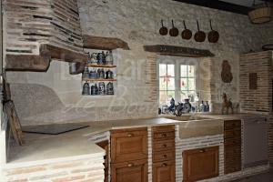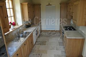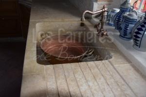 Evier et comptoir en ocre moyen fini brossé, 5 cm d’ép.