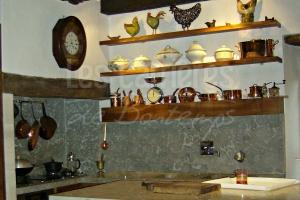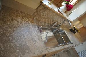 Counter top in medium ocher, honed finish, 3 cm thick. Top-bottom eased edges.