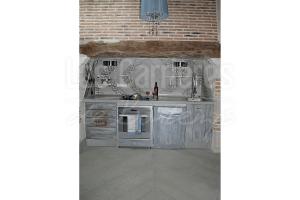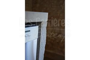 Cuisine fini matériaux de récupération, en gris cappuccino (taillé à contre passe) jambages aiguillés