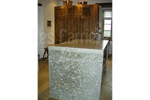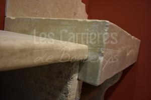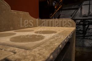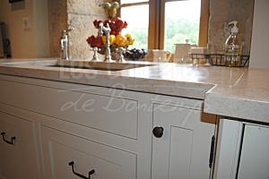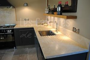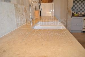 Comptoir en Saint Germain couleur claire, arête abaissée dessus / dessous 5 cm d’ép.